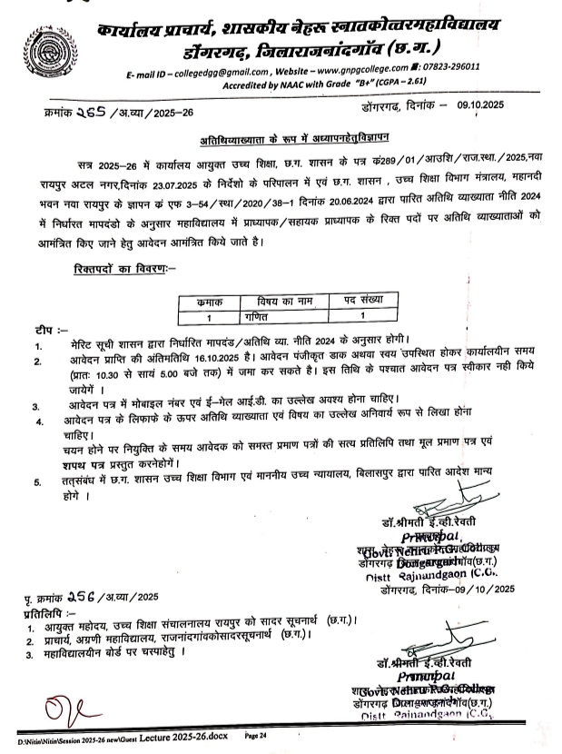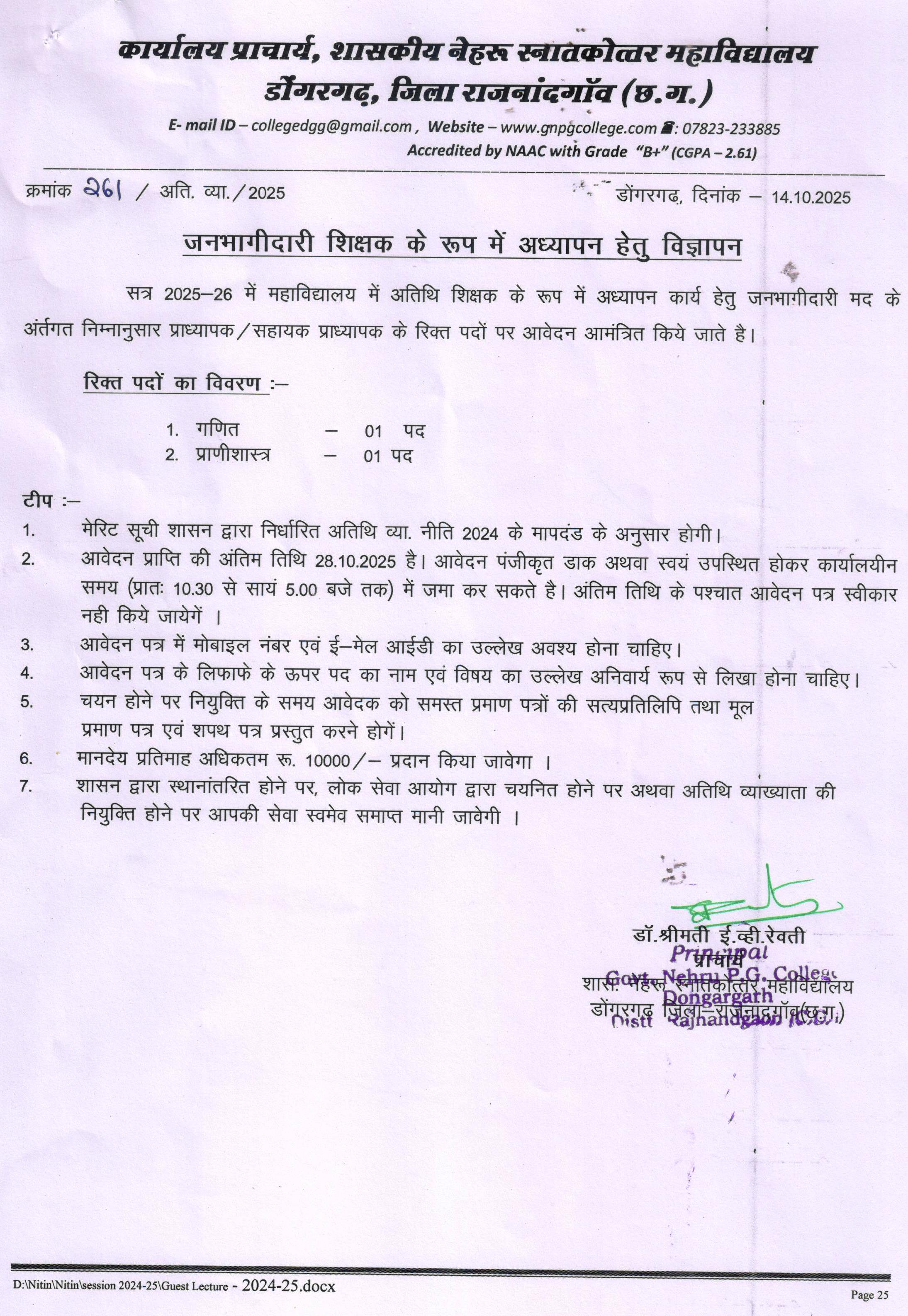 विद्या सर्वस्य भूषणम् हमारा मार्गदर्शी वाक्य है । इस तथ्य में हमारी गहरी आस्था है कि ज्ञान ही सभी मनुष्यों का आभूषण है । ईश्वर से हमारी प्रार्थना है कि वह समस्त समाज को अज्ञान से ज्ञान की ओर तथा अंधकार से प्रकाश की ओर ले जाये । मैं सभी छात्र/छात्राओं से कहना चाॅहती हूं कि वे अपनी ऊर्चा व समय का सदुपयोग ज्ञानार्जन में करें । महाविद्यालय में उपलब्ध समस्त सुविधाओं का लाभ उठायें और अपने बेहतर भविष्य का निर्माण करें । राज्य, देश व समस्त विश्व को उनसे कई अपेक्षाएं है । धन्यवाद.